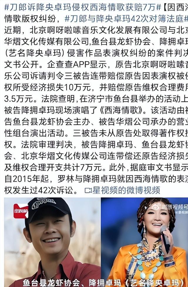 最终以刀郎获胜,降央卓玛赔款而告终。
