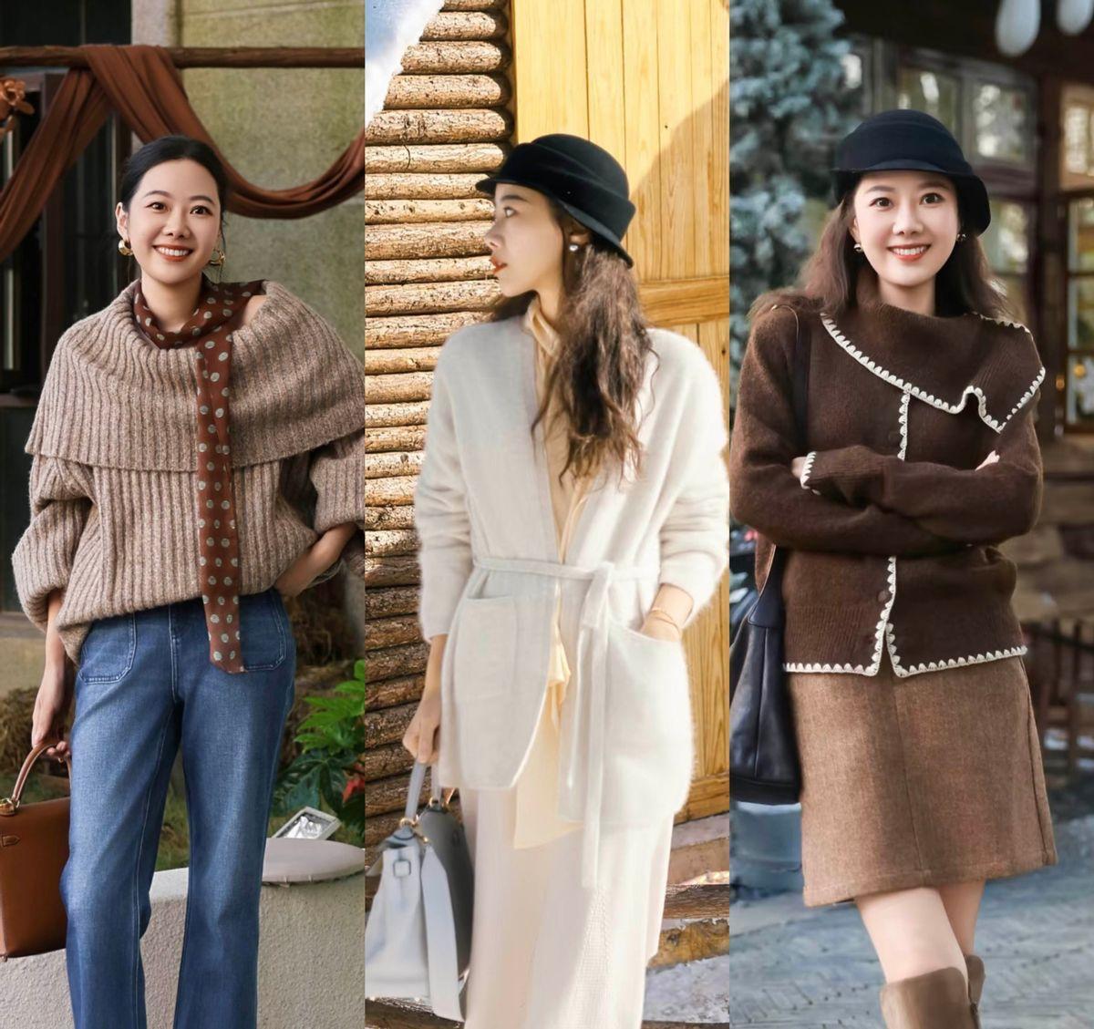 针织衫和毛衣是可以呈现出多种穿法的单品,在款式的挑选上,大家还是可以采用大地色,对年过40岁的女性会更加的友好一些。